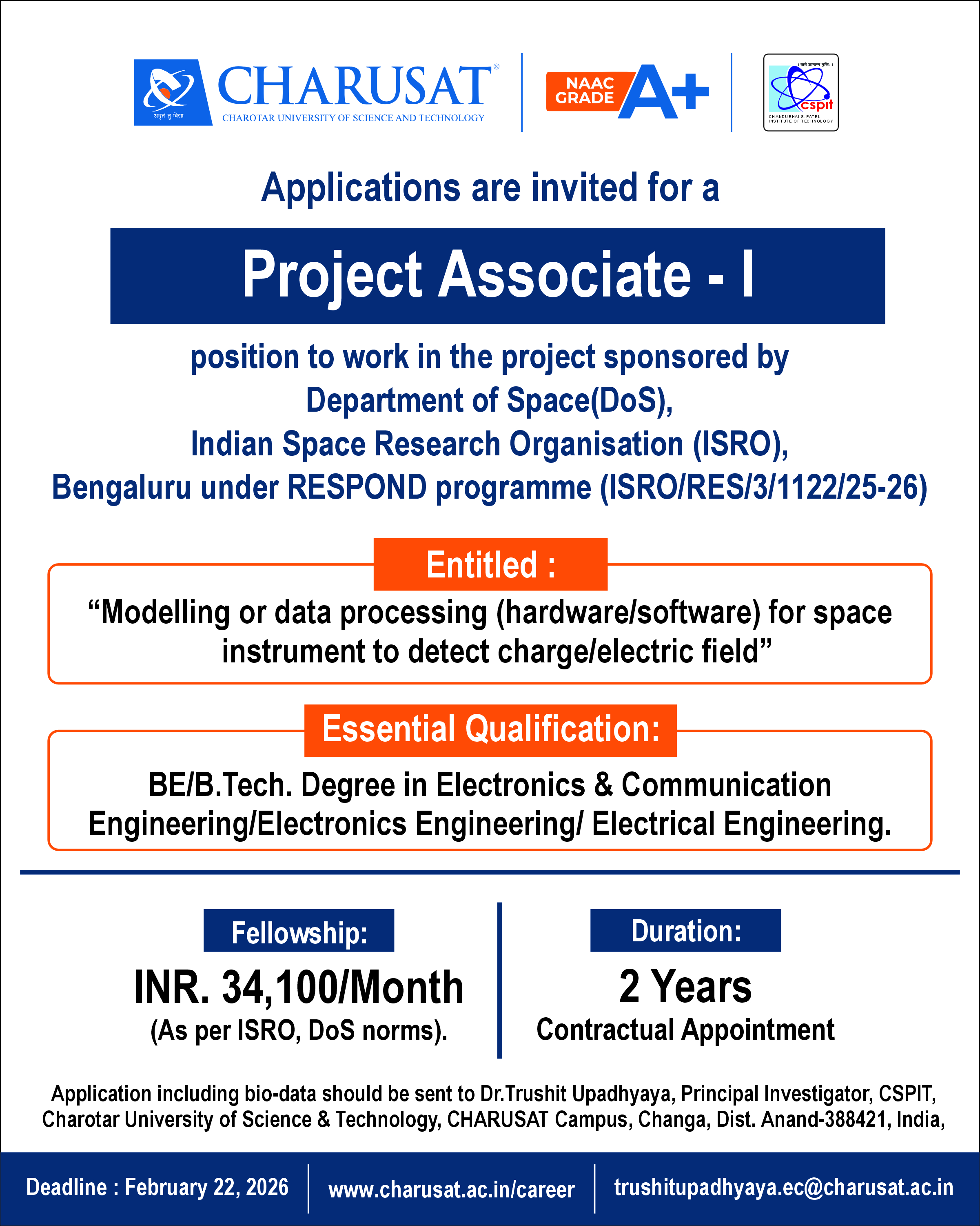 Join our dynamic and diverse academic community at Charotar University of Science and Technology (CHARUSAT) where we foster innovation, excellence, and lifelong learning. We are looking for passionate educators, researchers, and professionals who are committed to shaping the future of education.